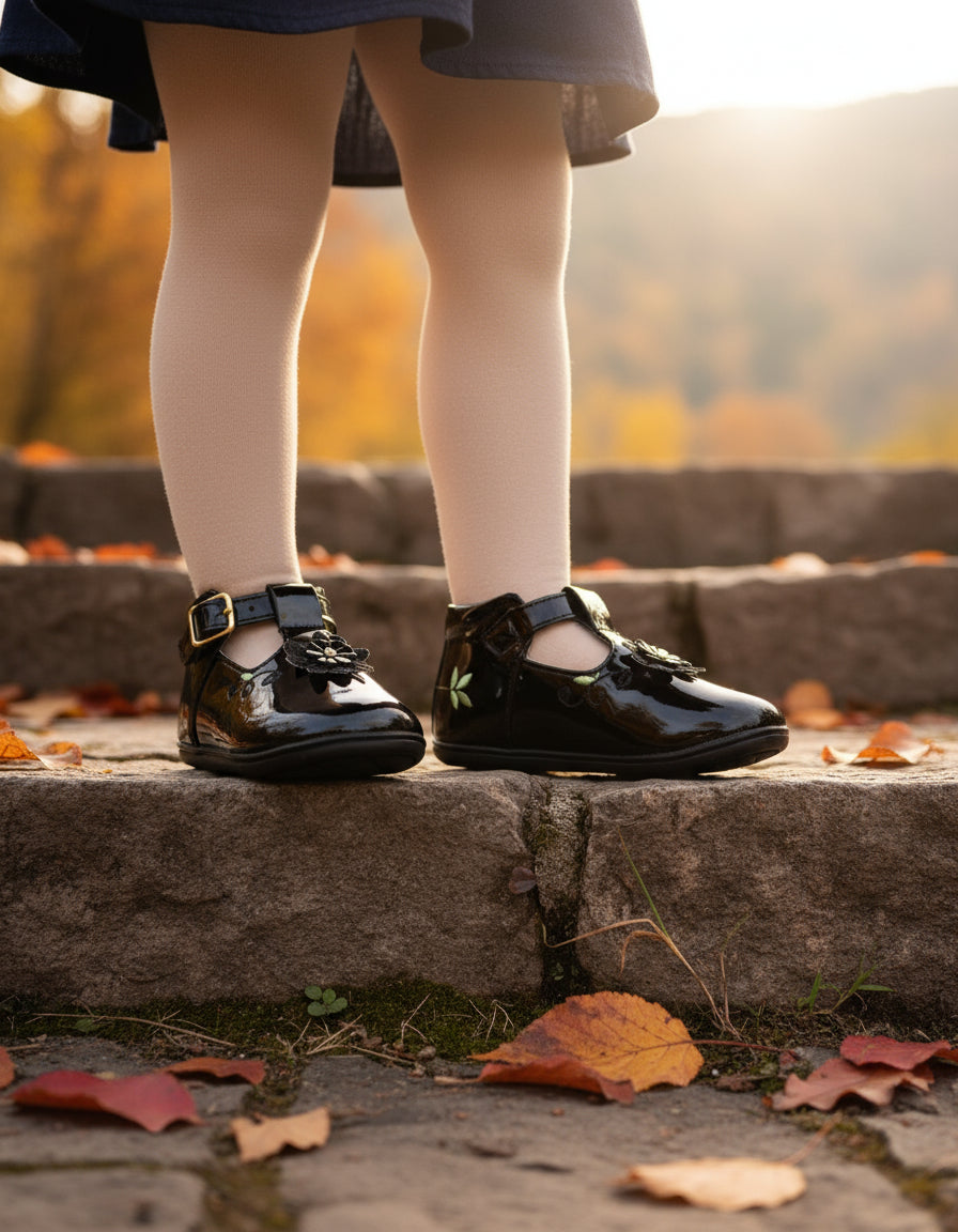 Ballerina Infantil Mirruña Charol Negro Bucarelli Con Flores