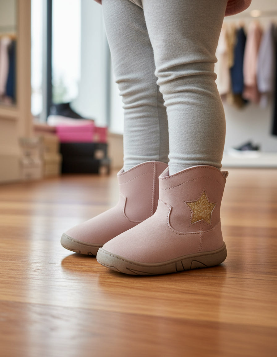 Botita Alta Con Estrella En Sintetico Tipo Nobuck Pelo Corto