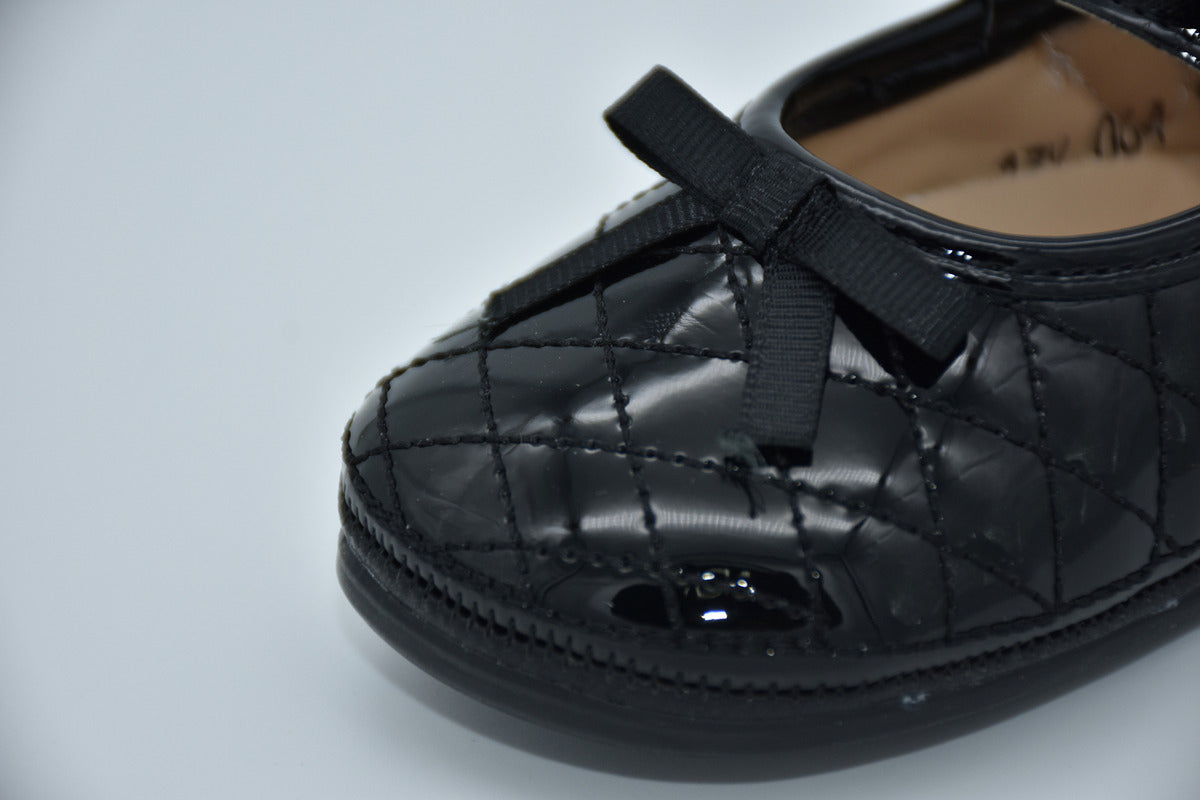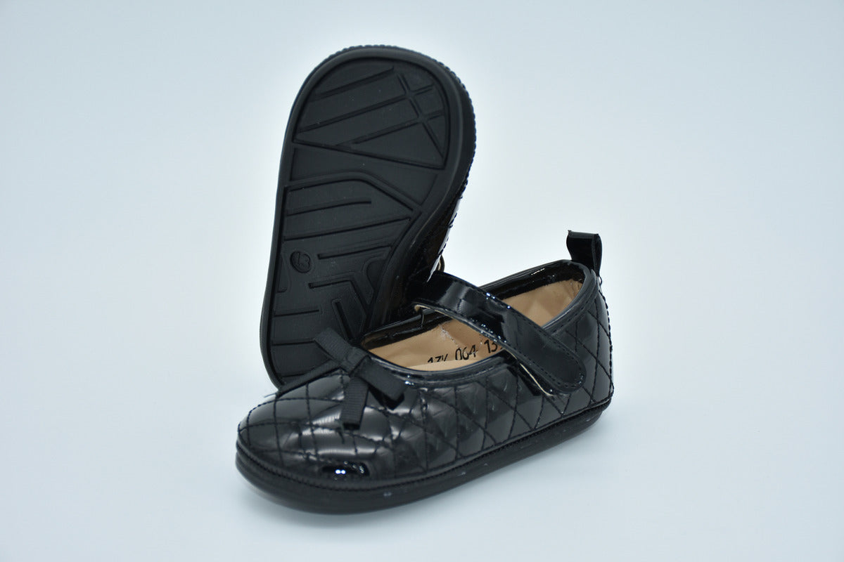 Ballerina Intantil Mirruña Charol Negro Con Moño Capitonado