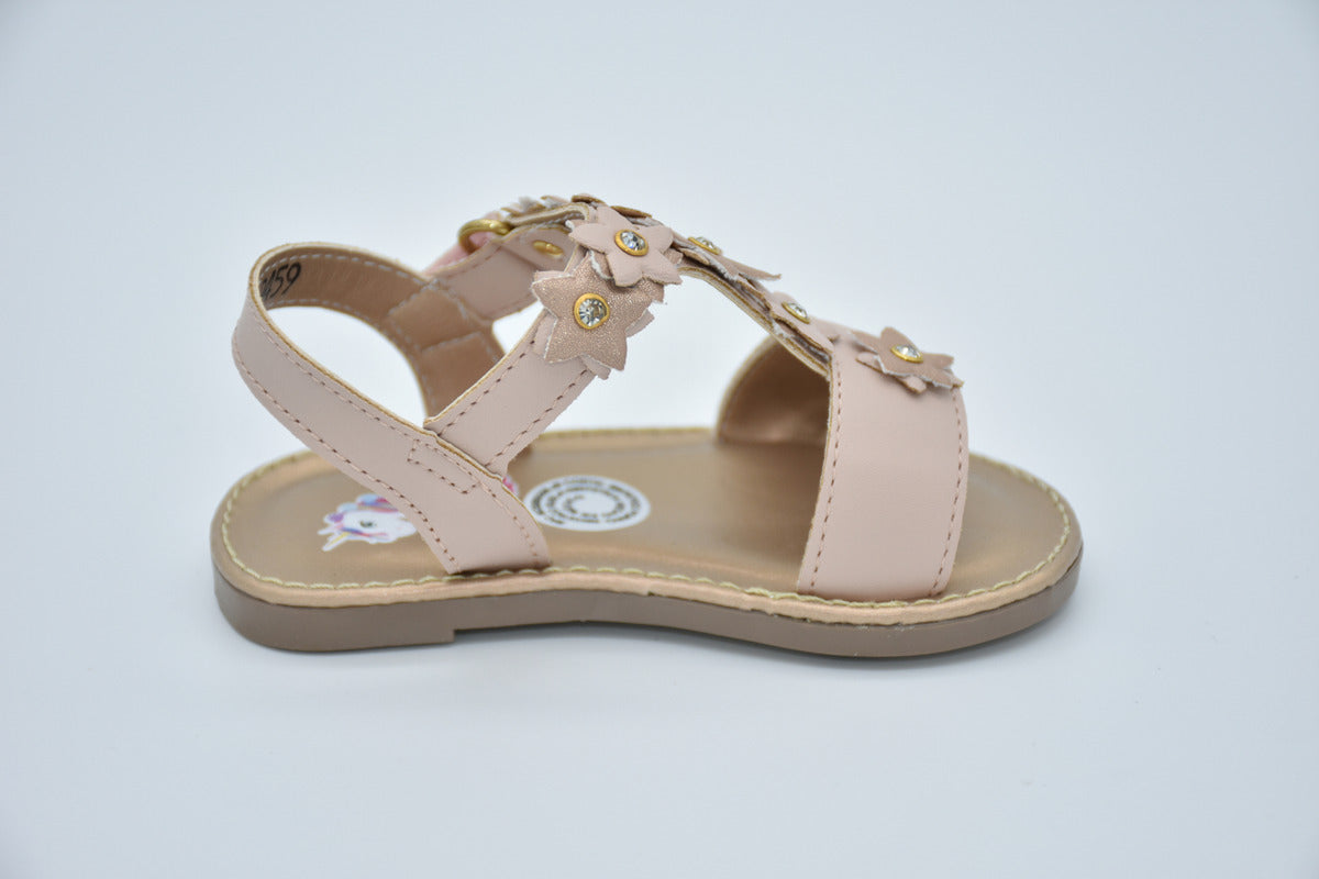 Sandalia Infantil Mirruña Nude Decoración De Flores